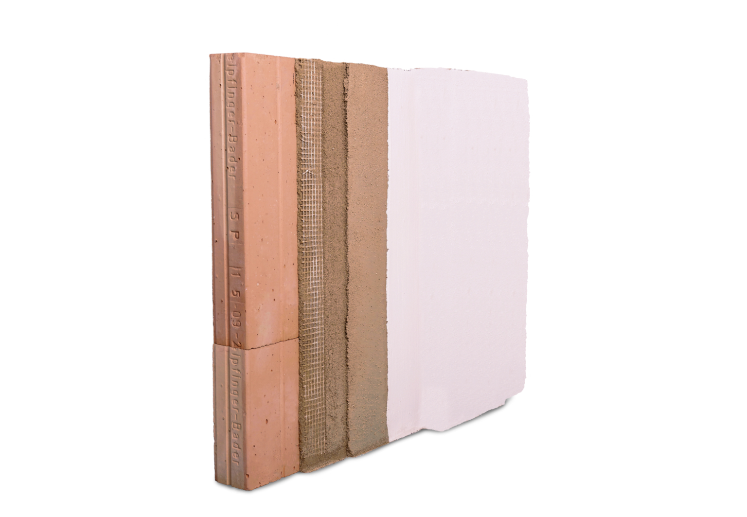 Der Silvacor-Mauerziegel von Leipfinger-Bader – gefüllt mit 100 Prozent sortenreinen Nadelholzfasern – bot einen geeigneten Untergrund für den Lehmputz. Denn: In diesem Fall ist eine komplette Austrocknung der ersten Schicht nicht unbedingt nötig, sodass die zweite Schicht schneller aufgetragen werden kann. Dies bedeutet eine spürbare Zeitersparnis auf der Baustelle. Langfristig profitieren die Bauherren von einem massiven Ziegelmauerwerk, das auch ohne zusätzliches Wärmedämm-Verbundsystem mühelos den Standard des KfW-40-Hauses erreicht.