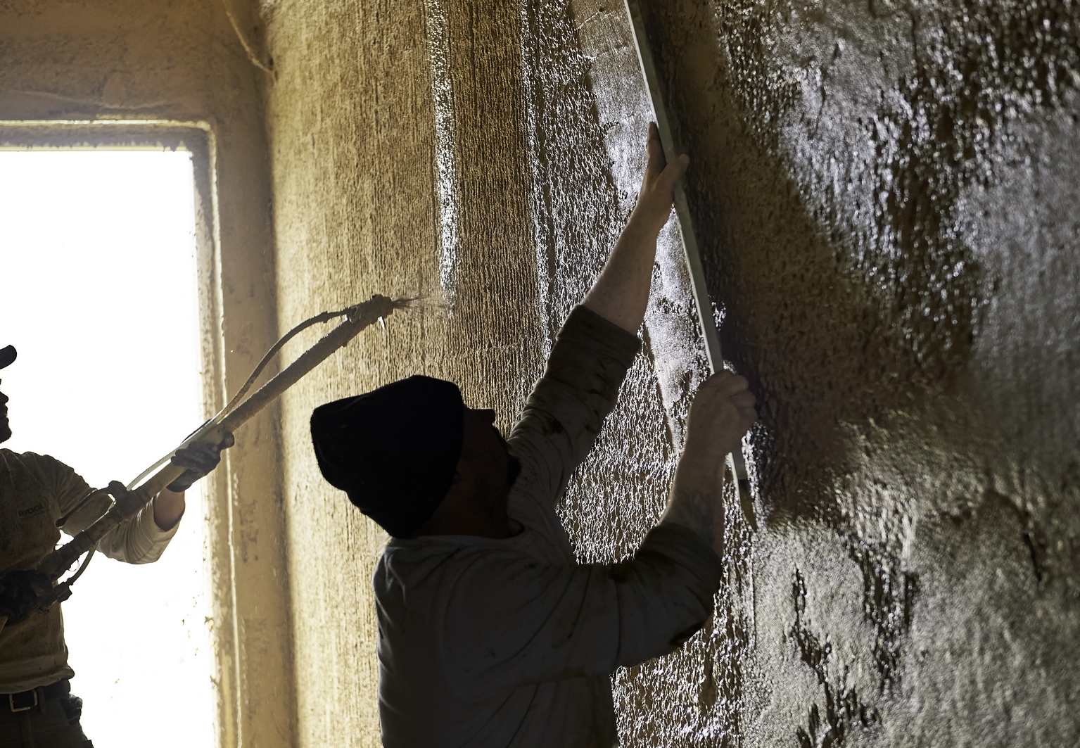 Für die Verarbeitung des Lehmputzes galt es darauf zu achten, dass der Untergrund den Vorgaben entsprach. Denn dieser muss fest, sauber, frei von filmbildenden Trennmitteln, ausreichend rau, saugfähig, tragfähig sowie trocken sein, da der Lehmputz nur mechanisch haftet. Die erforderliche Wassermenge, die dem Lehmputz zugegeben wurde, passten die Verarbeiter direkt vor Ort an den Untergrund aus Mauerziegeln, die Verarbeitungsart und die Auftragsstärke an. Sie variiert von Fall zu Fall. Zudem benötigt der Lehm je nach Untergrund und Beschaffenheit andere Trocknungszeiten. Zur Rissvermeidung wird grundsätzlich die Einlage von Armierungsgewebe empfohlen. Bei gewissen Untergründen empfiehlt es sich zudem, den Trocknungsprozess mit einem Trocknungsgerät technisch zu unterstützen. Auch das weitere erforderliche Verarbeitungsequipment erwies sich als handelsüblich. Insgesamt konnten die Putzarbeiten so ohne Unterbrechungen oder Schwierigkeiten im Bauablauf zügig abgeschlossen werden.