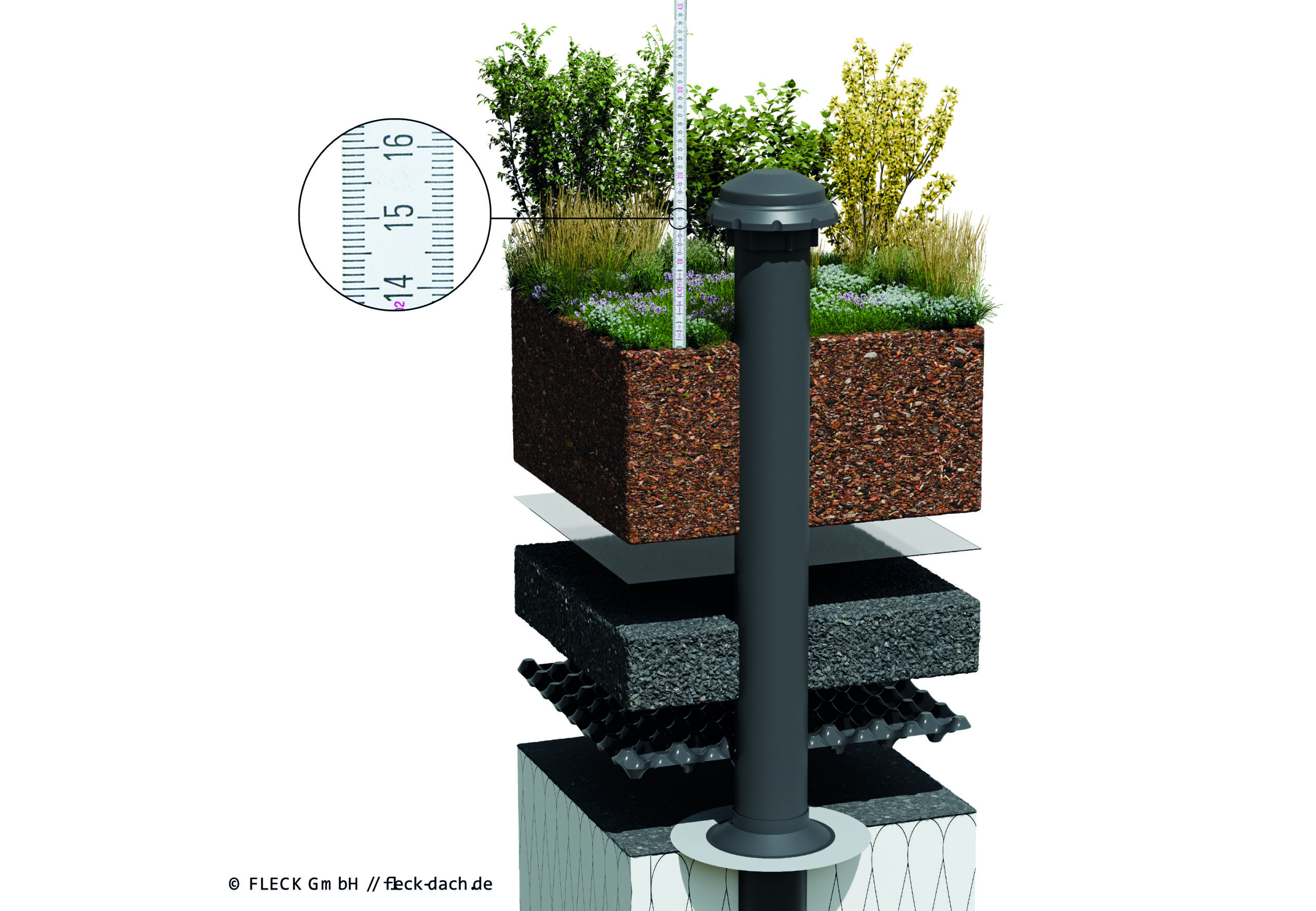 Für die zu einer objektbezogenen Entwässerungsberechnung angepassten Flachdach-Rechteck-Notüberläufe bietet Fleck einen leicht zu bedienenden Konfigurator auf der Webseite an. Hierfür werden Angaben zum gewünschten Typ, zum Einlaufmaß, zur Kanallänge und -neigung sowie der Anstauhöhe eingepflegt. Abschließend werden eine Auswahl passender Kunststoff- bzw. Elastomerdachbahnen zur Auswahl gestellt. Auch Sonderwünsche wie die optionale Farbgestaltung finden Berücksichtigung.