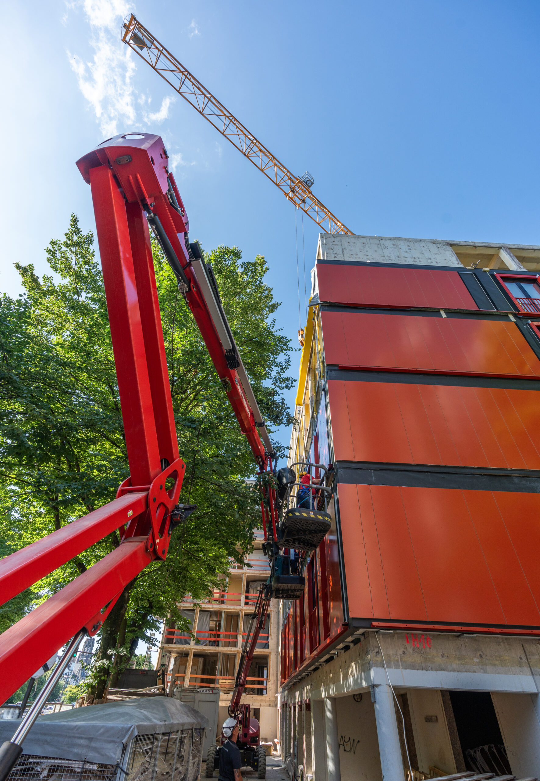 Paradebeispiel für ressourcenschonendes Bauen im urbanen Raum: Wie Holzbauweise und innovative Vorfertigungstechnologien zur nachhaltigen Transformation von Bestandsgebäuden beitragen können, demonstriert das Projekt „The Flag“ in Köln-Nippes. Das ehemalige Bürogebäude aus den 1980er Jahren wurde jetzt in ein modernes Appartementhaus für Studierende und Young Professionals mit 137 Wohneinheiten auf einer Bruttogeschossfläche von 7.134 Quadratmetern umgewandelt. Neben der Aufstockung in Holzbauweise realisierte Brüninghoff dabei eine energetisch optimierte Vorhangfassade.