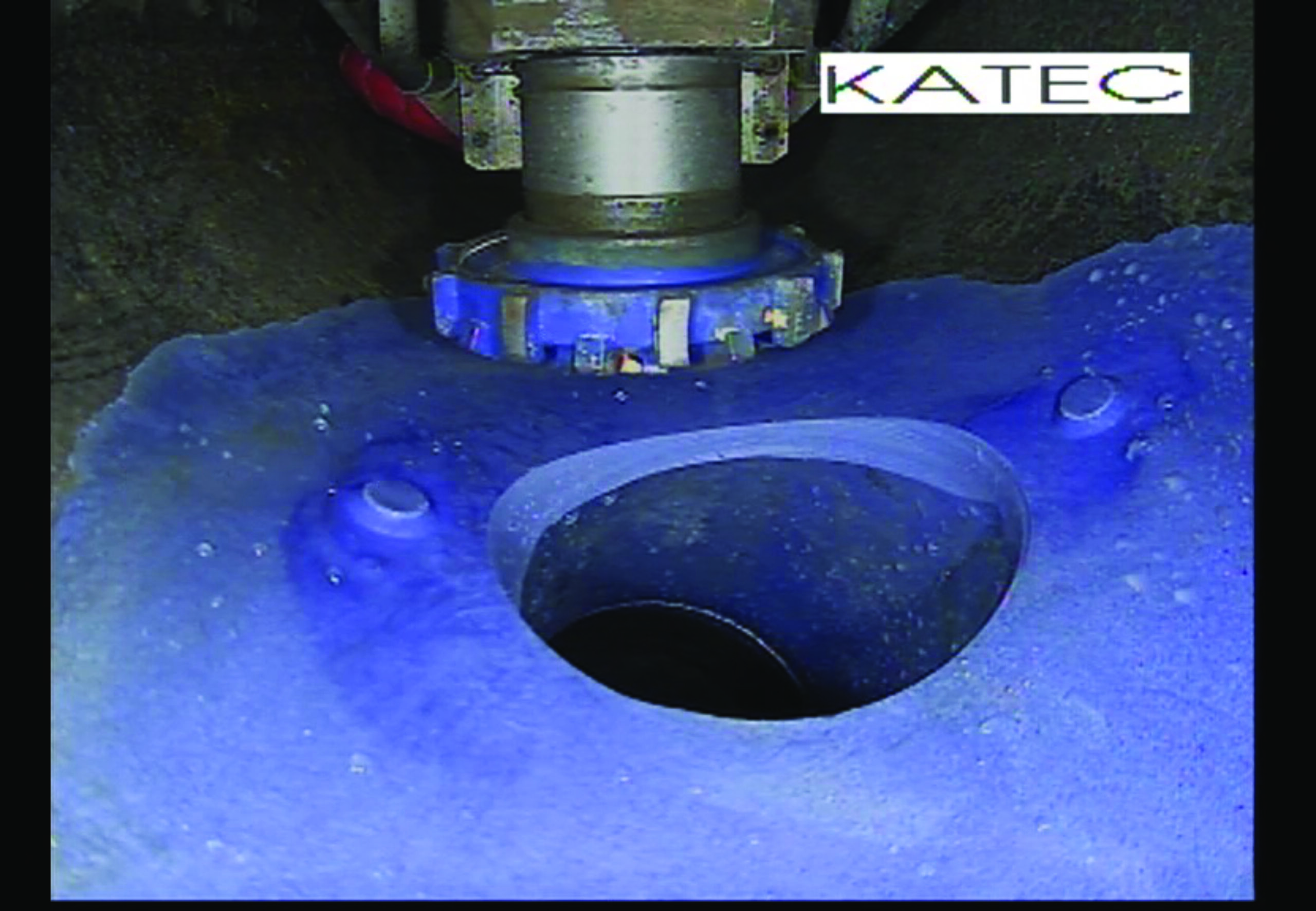 Katec setzt daher bewusst auf robotergestützte Reparaturverfahren von KA-TE und Pipetronics, bei denen der Schadensbereich individuell bearbeitet wird. Moderne Fräsroboter ermöglichen eine präzise Freilegung des Anschlusses – unabhängig von dessen Lage oder Geometrie. Ablagerungen, Sielhaut und geschädigte Materialien können gezielt entfernt werden, sodass ein definierter Arbeitsraum mit exakt vorbereiteten Haftflächen entsteht. Im Anschluss erfolgt die Reparatur formangepasst und kontrolliert. Das Reparaturmaterial wird gleichmäßig eingebracht und verpresst, wodurch eine homogene, kraftschlüssige Verbindung zwischen Hauptkanal und Anschluss hergestellt werden kann. Auch bei stark beschädigten oder ungünstig eingebauten Stutzen lassen sich so technisch belastbare Lösungen realisieren.